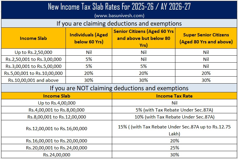 New Income Tax Regime (FY 2025–26 / AY 2026–27)